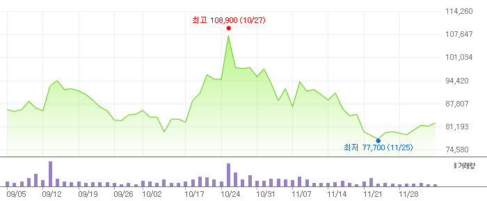 | 한화 (000880) | 82,300 | 33,669 | 83,826 | 55,857 | 10.49 | 6.99 | 0.68 | 4.0 (6) | 115,000 | 2 | 106,835 | 0.00 | 0.008324 | 64.3885 |