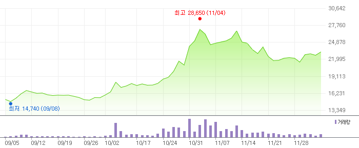 | 대한전선 (001440) | 23,250 | -47 | 15,663 | 2,503 | 34.73 | 5.55 | 1.87 | 4.0 (3) | 19,200 | 1 | 3,011,065 | 0.02 | 2.831916 | 15.5748 |