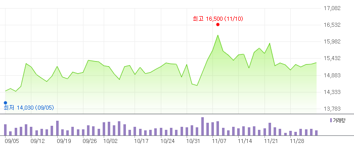 | LG유플러스 (032640) | 15,300 | 12,898 | 14,844 | 12,569 | 9.33 | 7.90 | 0.72 | 3.9 (17) | 17,587 | 2 | 580,075 | 0.00 | 0.488736 | 33.3377 |