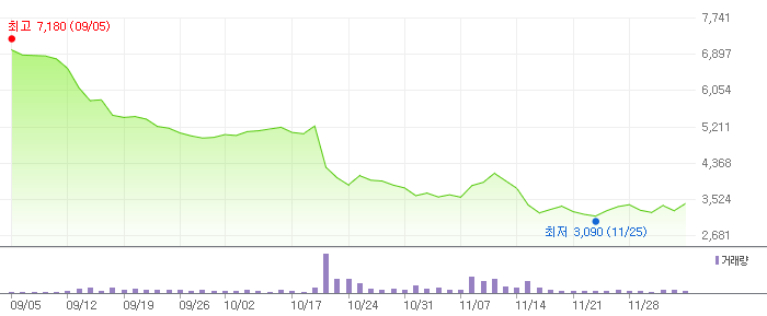 | 다원시스 (068240) | 3,425 | 3,918 | 8,995 | 1,462 | 29.59 | 4.81 | 1.33 | 0.0 (0) | 0 | 1 | 319,322 | 0.01 | 0.04063 | 15.7626 |